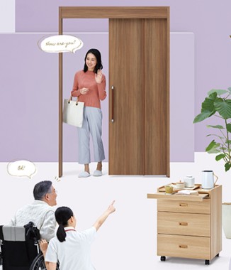「スマイリー アルタン」は天然木の集成材枠を使用したスライドドアです。