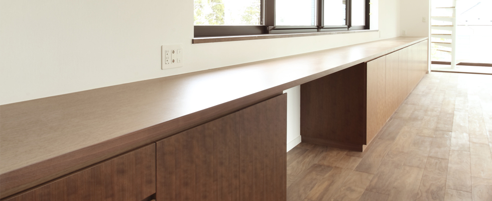 一般住宅用の阿部興業造作家具では、カラー、素材、サイズ、仕様と最も多岐にわたる家具の