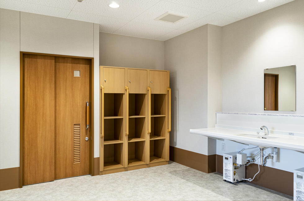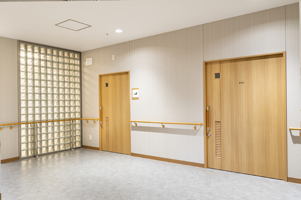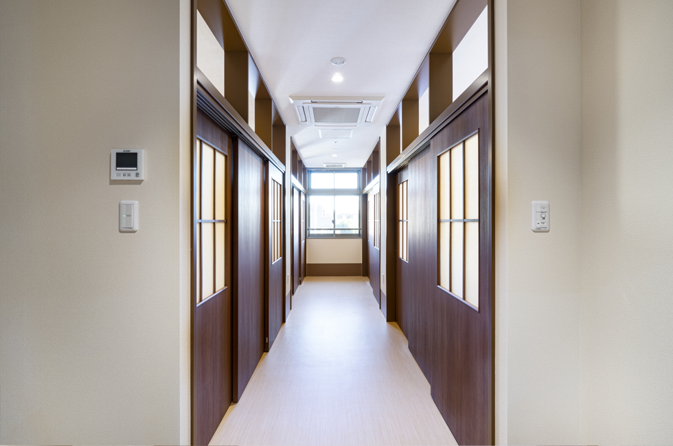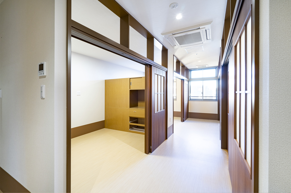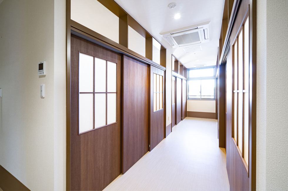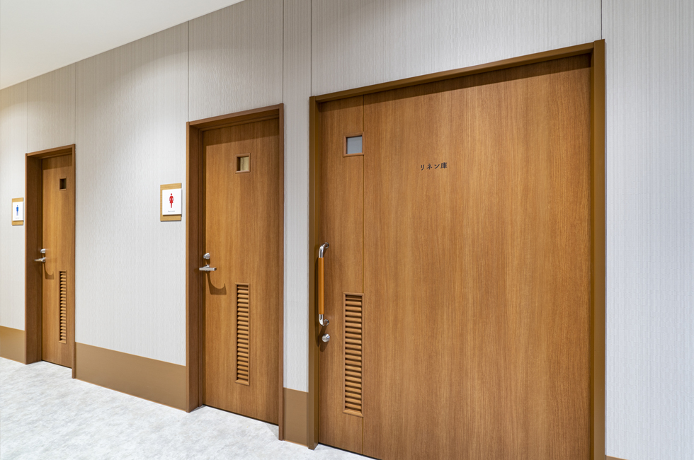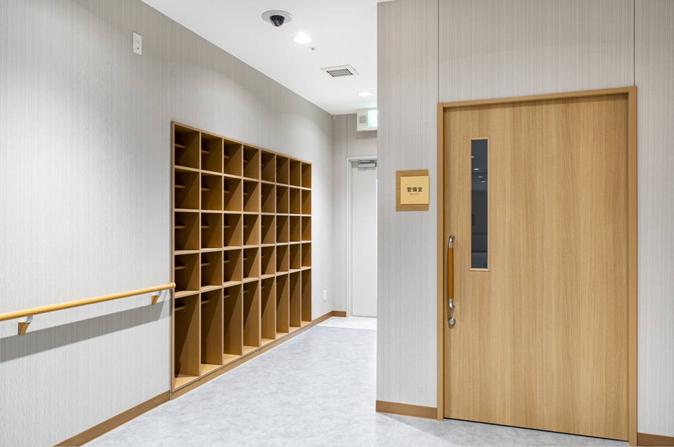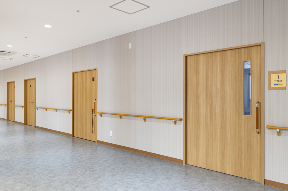特別養護老人ホームはるぱてお大宮 地域に根ざした視点で、利用者様のこれまでの生活の継続を信条としている、「特別養護老人ホームはるぱてお大宮」。 全ての個室に設置された3連引違のパーテーションは、ご入居者様のプライバシーを守ります。 納入商品 オートスライドドア(スチール枠・不燃扉)、2連引きインセット自閉式(スチール枠・不燃扉)、パーテーション3連引違/スチール枠・AK化粧板)、下足入、収納家具、カウンター 施主 社会福祉法人 悠揚会 設計 株式会社 神田建築設計事務所 施工 近藤建設 株式会社 ※当サイトの情報を転載、複製、改変等は禁止いたします。