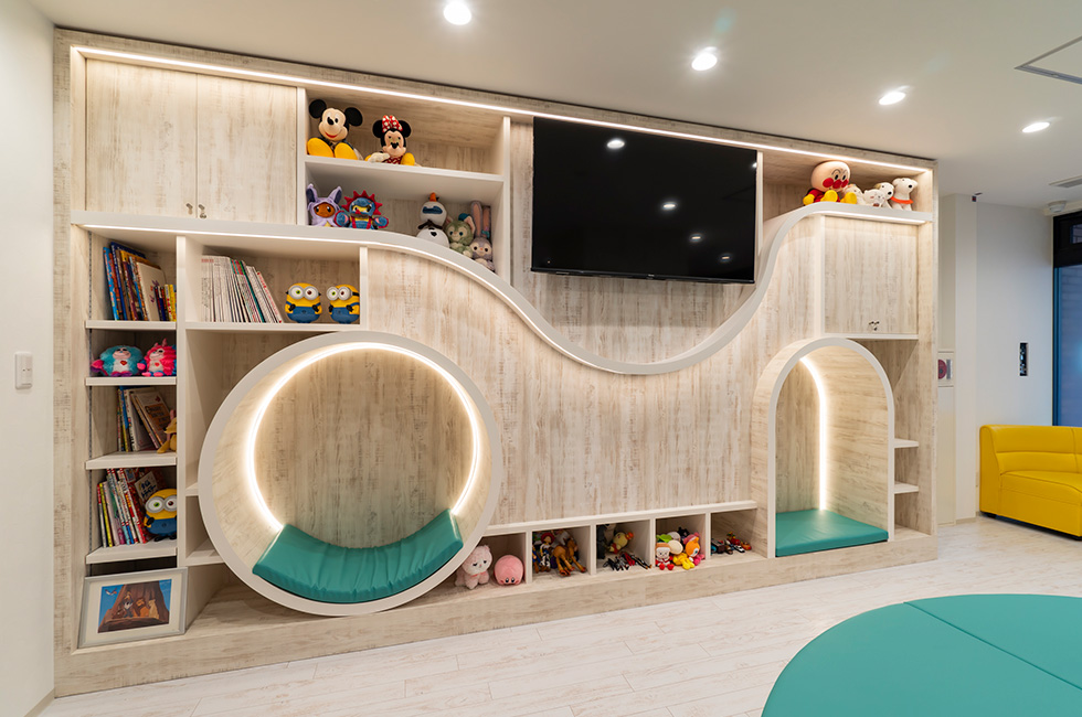 もたちが楽しく通院できるように工夫されています。阿部興業では造作家具でお手伝いさせていただ