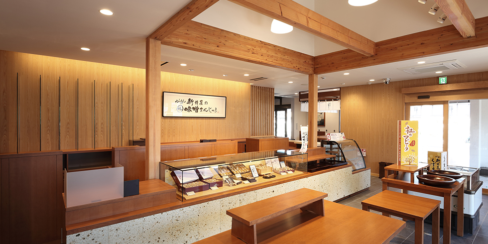 味噌まんじゅう新井屋 佐野田沼工房 大きな1枚ガラス戸はどこからも光が入り込むため、明るい店内を創り上げています。またカフェコーナーが併設されており、テーブルやベンチなど木製品で埋め尽くされた店内は温かみのあるくつろぎの空間を演出しています。 納入商品 カウンター、ガラス戸、フラッシュドア、丸テーブル、両開収納、階段、テーブル 施主 株式会社 味噌まんじゅう新井屋 設計 株式会社 匠 施工 株式会社 奥木工建設 ※当サイトの情報を転載、複製、改変等は禁止いたします。