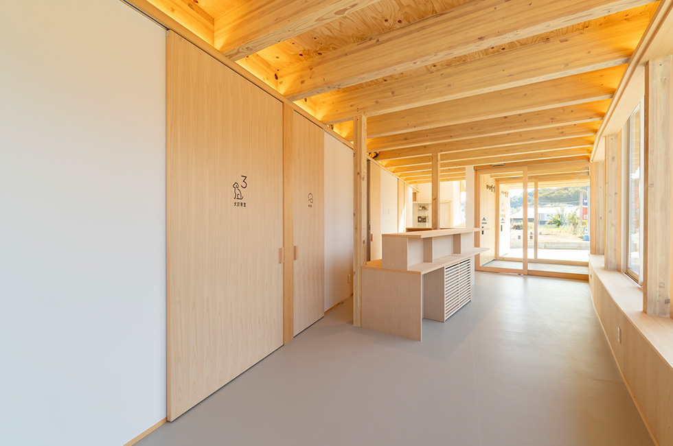 (仮称)秦野市動物病院新築工事 1993年創立の地域の「ホームドクター」的な役割を果たす動物病院です。動物たちと飼い主様はも ちろん、スタッフにとってもより快適な空間になるよう設計されております。阿部興業では内装建 具、造作家具以外にもX線防護ドアでもお手伝いさせていただきました。桧造りの院内は桧の香り と木材特有の温かみにつつまれ、家族の一員である動物たちと安心して医療を受けることができる でしょう。 木製建具、X線防護ドア、造作家具 合同会社ZSA 株式会社 コラム建設 ※当サイトの情報を転載、複製、改変等は禁止いたします。