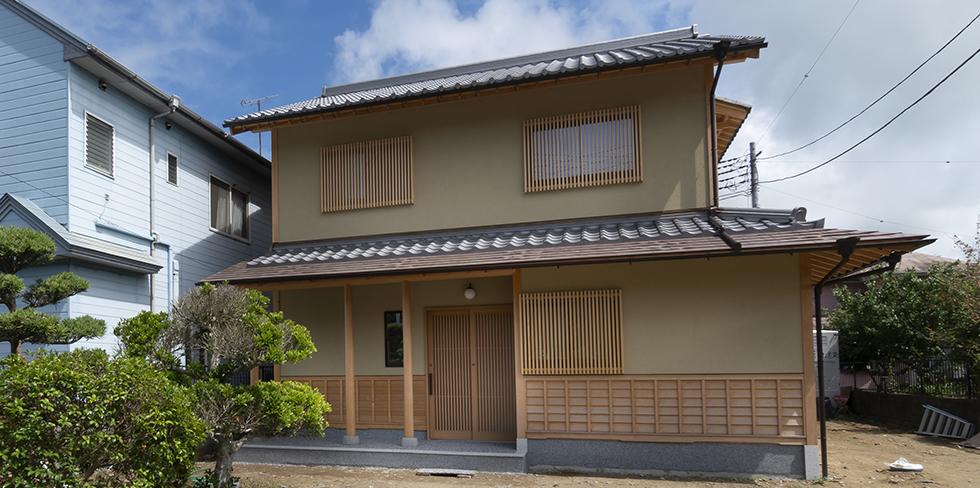 特徴のある広い土間玄関は路地へと繋がり、そこにはコミュニケーションが生まれる縁側が設けられています。