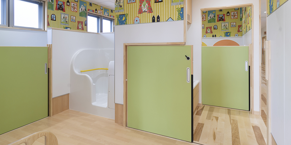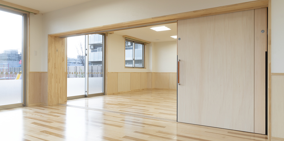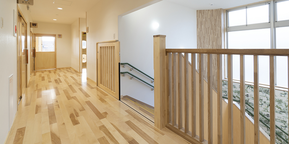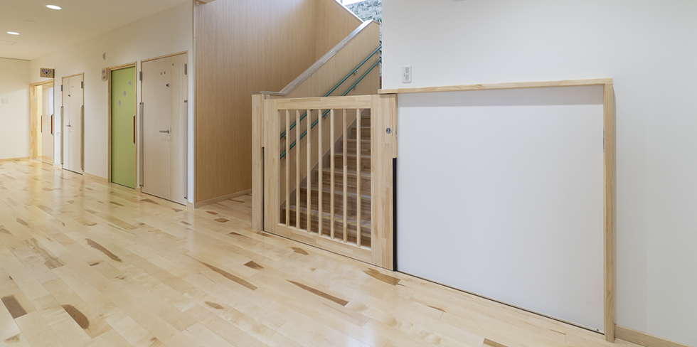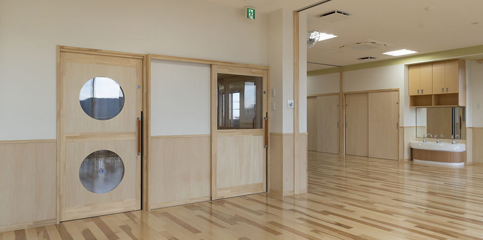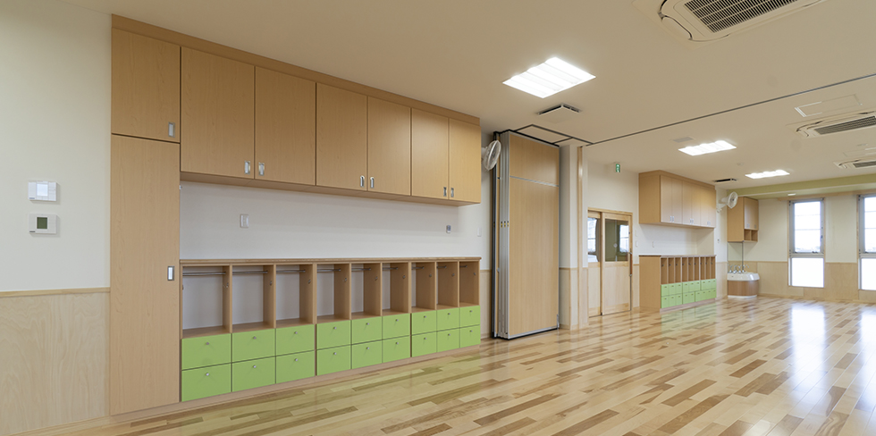 ぞうさんのように子供たちを助け・支えになり優しさと温かさで包みこむそんな存在を目指した保育園では、子供たちの安全を第一に考えられ、木の温かさを感じることができるシリーズSMILEY arutan(スマイリー アルタン)が採用されました。
