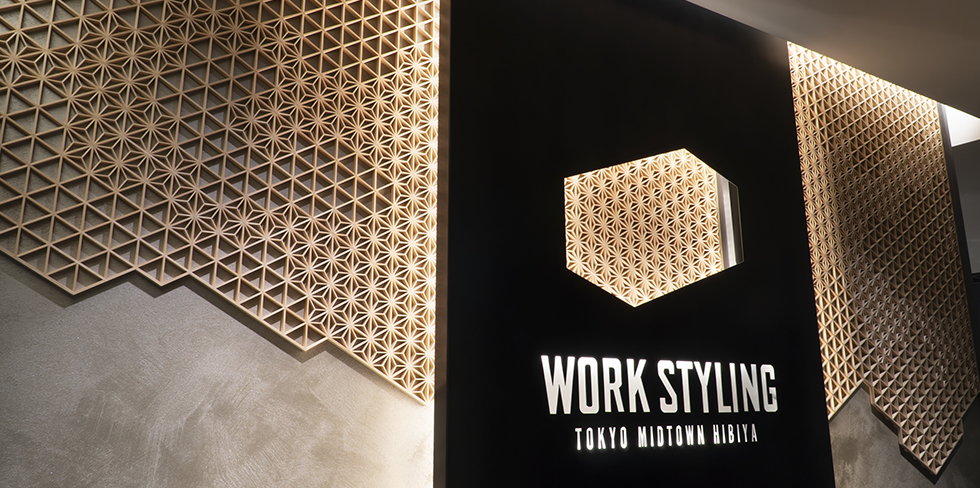 ワークスタイリング 東京ミッドタウン 日比谷 納入商品 壁面組子(檜)、フラッシュドア(タモ柾目突板) 施主 三井不動産 株式会社 店舗設計施工 三井デザインテック 株式会社 ビル施工 鹿島建設 株式会社 ※当サイトの情報を転載、複製、改変等は禁止いたします。