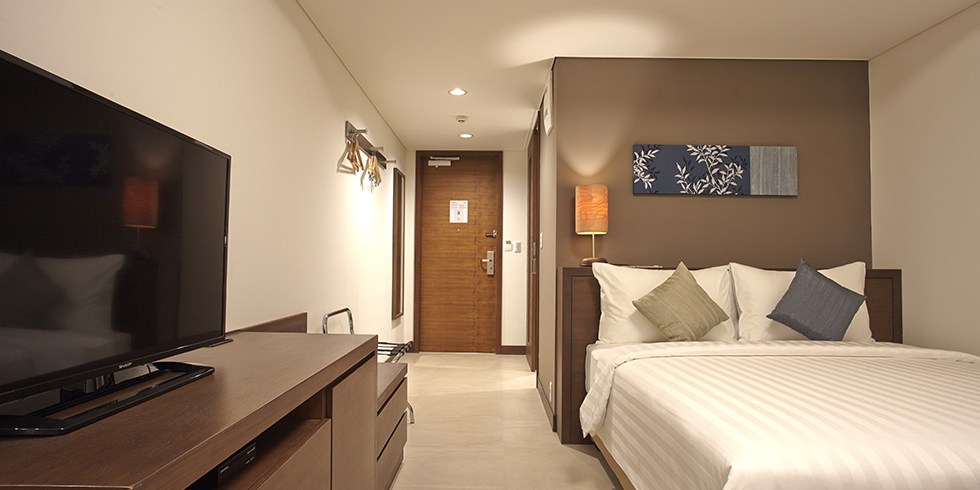 2014年にオープンしたAXIA South Chikarangにtower2が誕生。フロントでは日本で製作した内閣総理大臣賞受賞者作品の匠の技術による組子が宿泊客を出迎え、ロビーに設置された高さ3480ミリの間仕切格子と共に、和と洋を融合させたくつろぎの空間を演出しています。