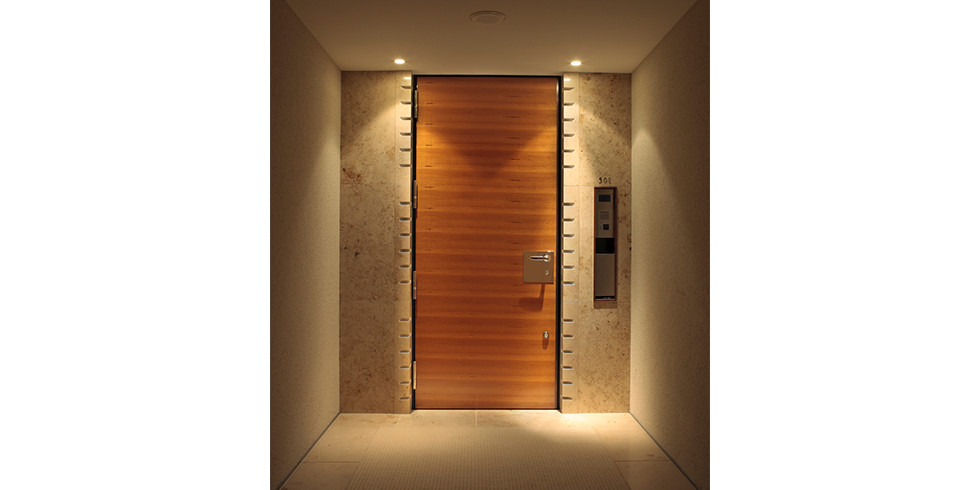パークマンション六本木 伝統の技を用いた名栗仕上げ単板貼りドア、 厳選された素材の革編みのドアは圧倒的存在感があり、 チーク突板仕様の防火ドアと共に、 都心に相応しい洗練された空間を創りだしています。 納入商品 木製防火ドア、名栗仕上げ単板貼ドア、革編みドア 施主 三井不動産レジデンシャル 株式会社 設計 アーキサイトメビウス 株式会社 施工 鹿島建設 株式会社 ※当サイトの情報を転載、複製、改変等は禁止いたします。