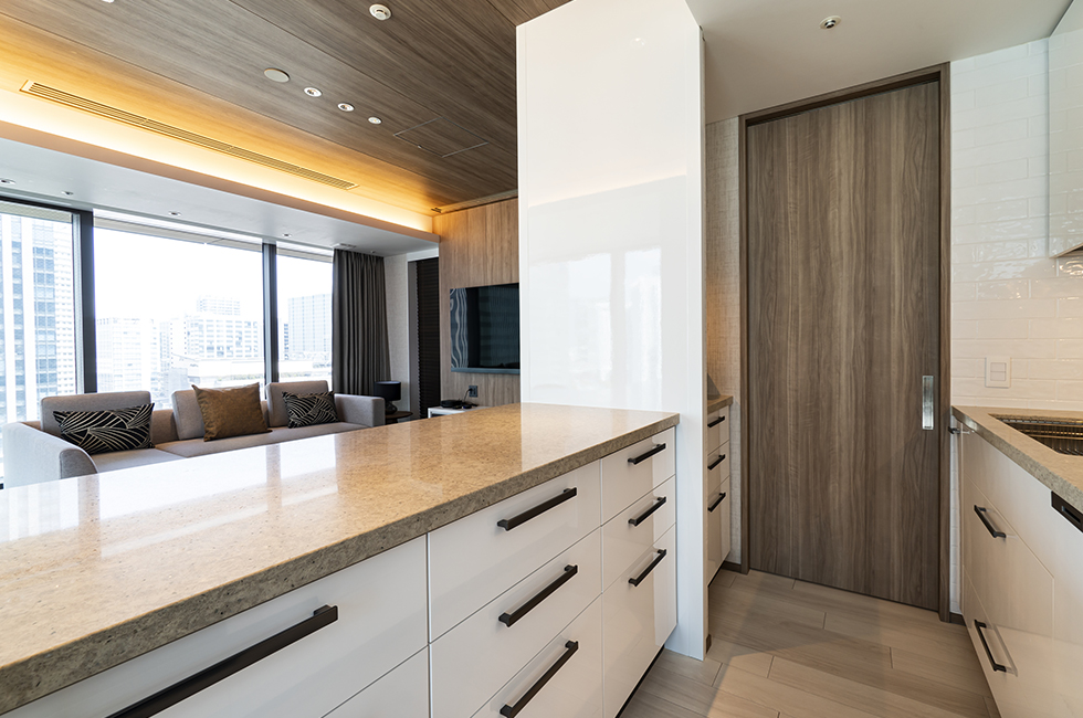The Apartment Bay YOKOHAMA 国際都市、横浜。 世界のエグゼクティブが集うこの地に、「ウェスティンホテル横浜」の施設やサービスが利用できるロングステイサービスアパートメントが誕生しました。 洗練されたデザインの内装ドア、空間を柔軟に区切ることができるアルミ間仕切が、上質な空間へといざないます。 納入商品 内装ドア、木枠、アルミ間仕切 設計 株式会社 日本設計 施工 株式会社竹中工務店 ※当サイトの情報を転載、複製、改変等は禁止いたします。