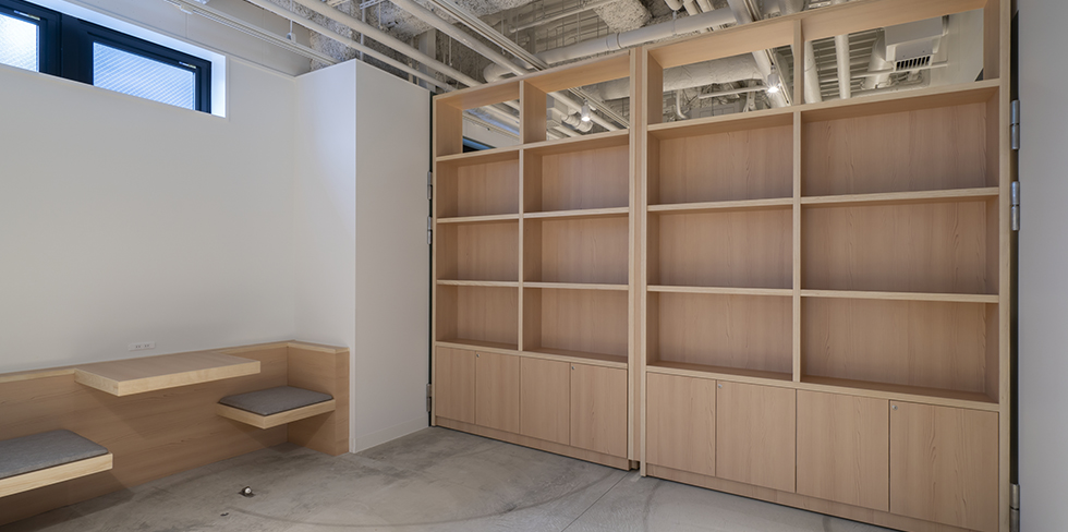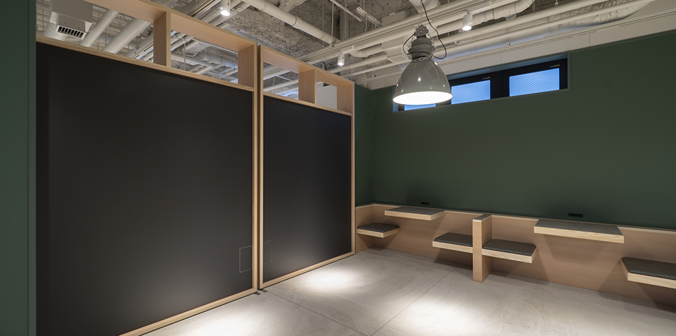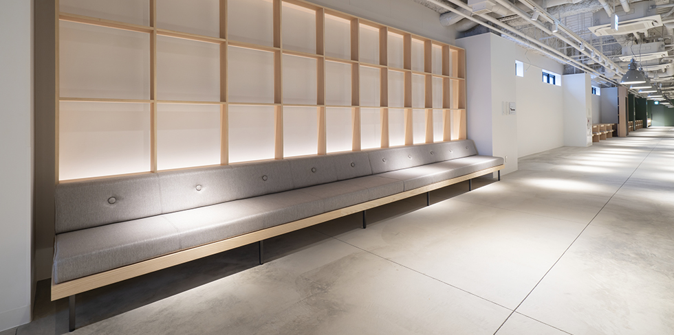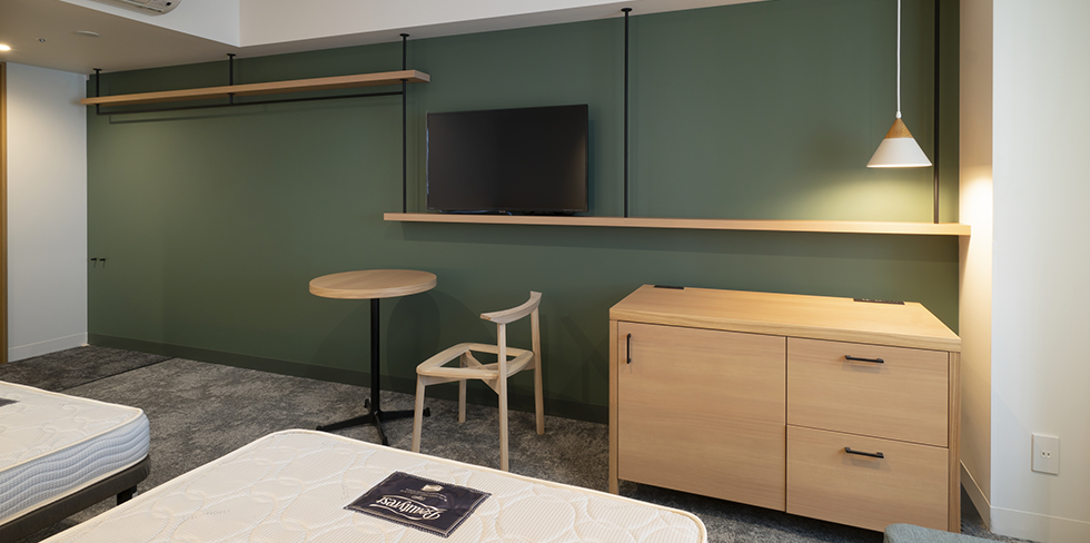 古くから盆栽の街として知られる大宮で、ホテル全体が公園のようなグリーンを感じるホテルを目指した「REF Omiya by VESSEL HOTELS」。可動間仕切棚を設置している朝食会場は、日中カフェとして開放し1つの広いコワーキングスペースとして使用できます。宿泊施設以外のホテルの活用方法として可動間仕切棚は一役買っています。