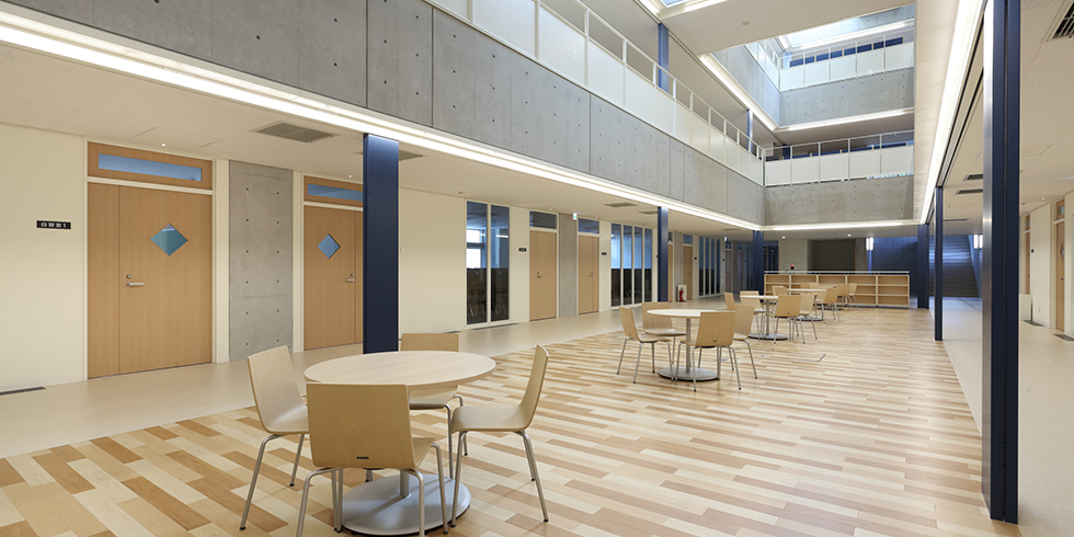 子どもたちにとって保育園は昼間の「おうち」。それならばと、温かみがあり、くつろげて、そして何より安心できる空間であることを重視したラフ・クルーの保育園。園児用流し台には水返し加工や可愛らしい丸窓デザインの扉や間仕切り。子どもたちの目線にあわせて設計されたスマイリーのラインナップが成長をサポートします。