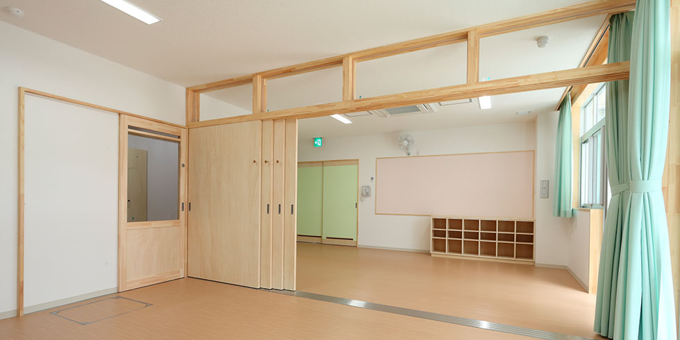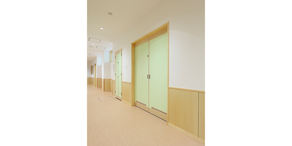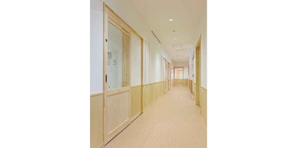 フラッシュ戸には丸額、無地フラッシュには赤松集成材を使い、